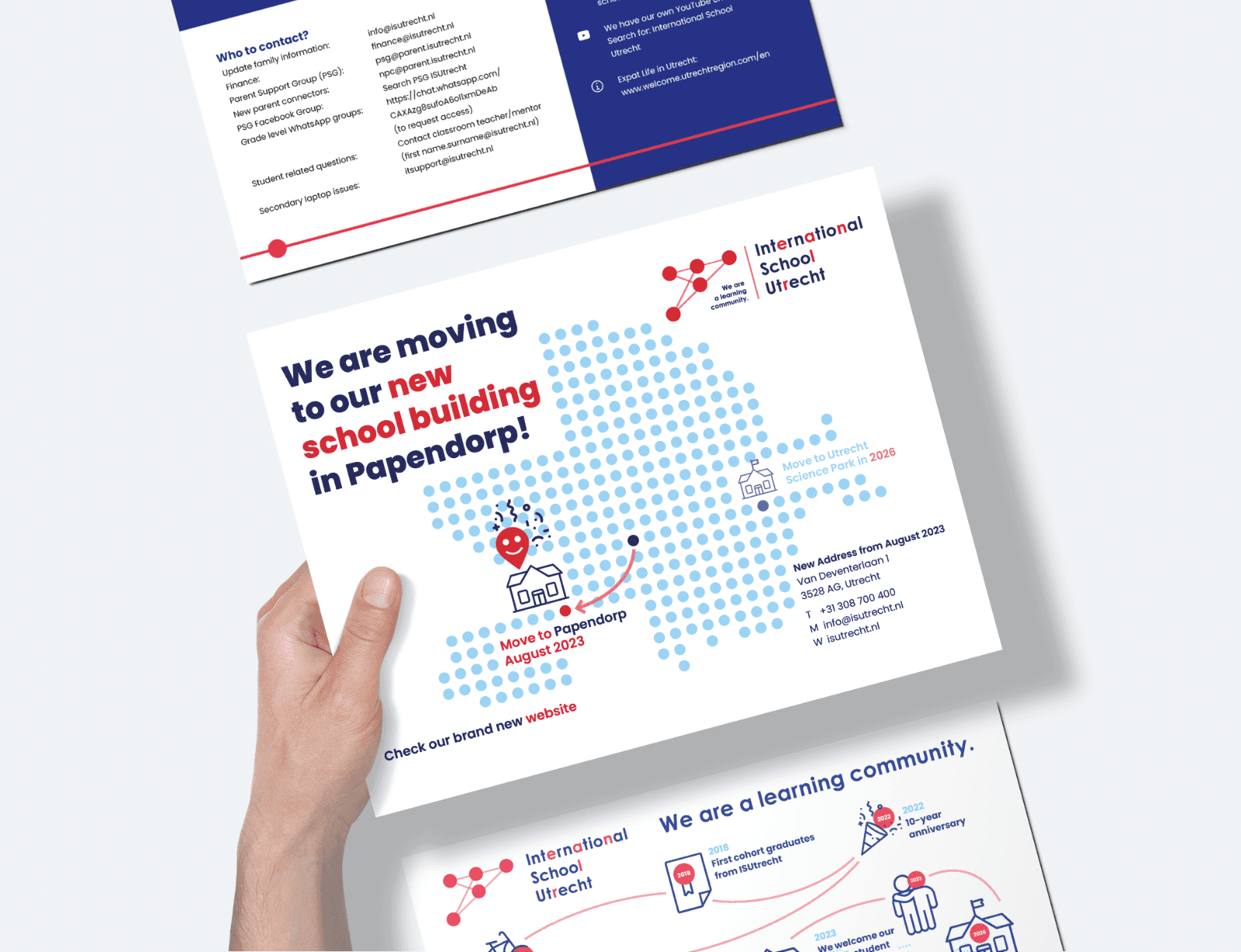 Help ons bij het ontwikkelen van een verbindend schoolmotto, kernwaarden en een nieuwe huisstijl. Vertaal deze naar een basisset van professionele communicatiemiddelen, zoals een nieuwe website, routing voor het tijdelijke schoolgebouw en sjablonen voor social media.